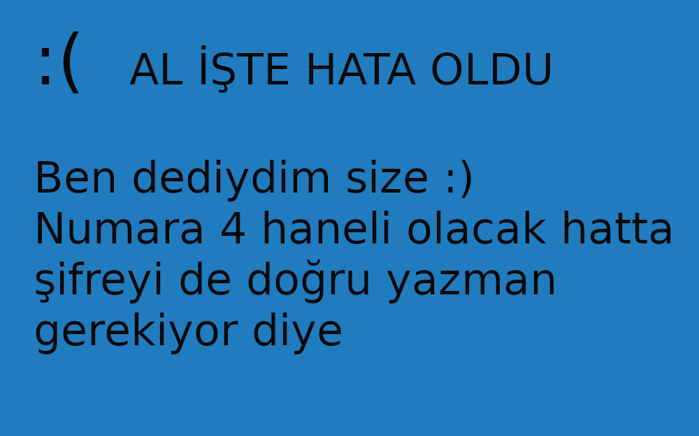 Hata - Bilgileri Hatalı Girdin Büyük Olasılıkla.
